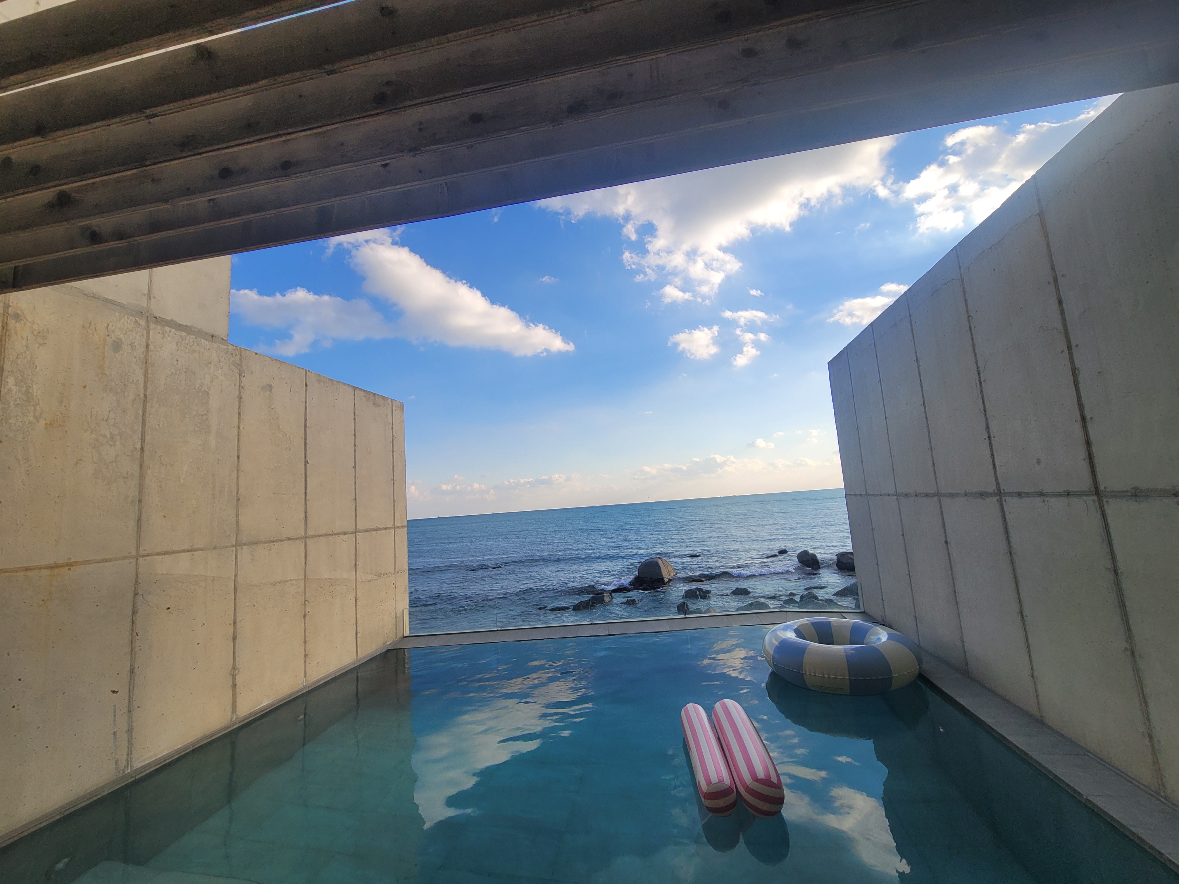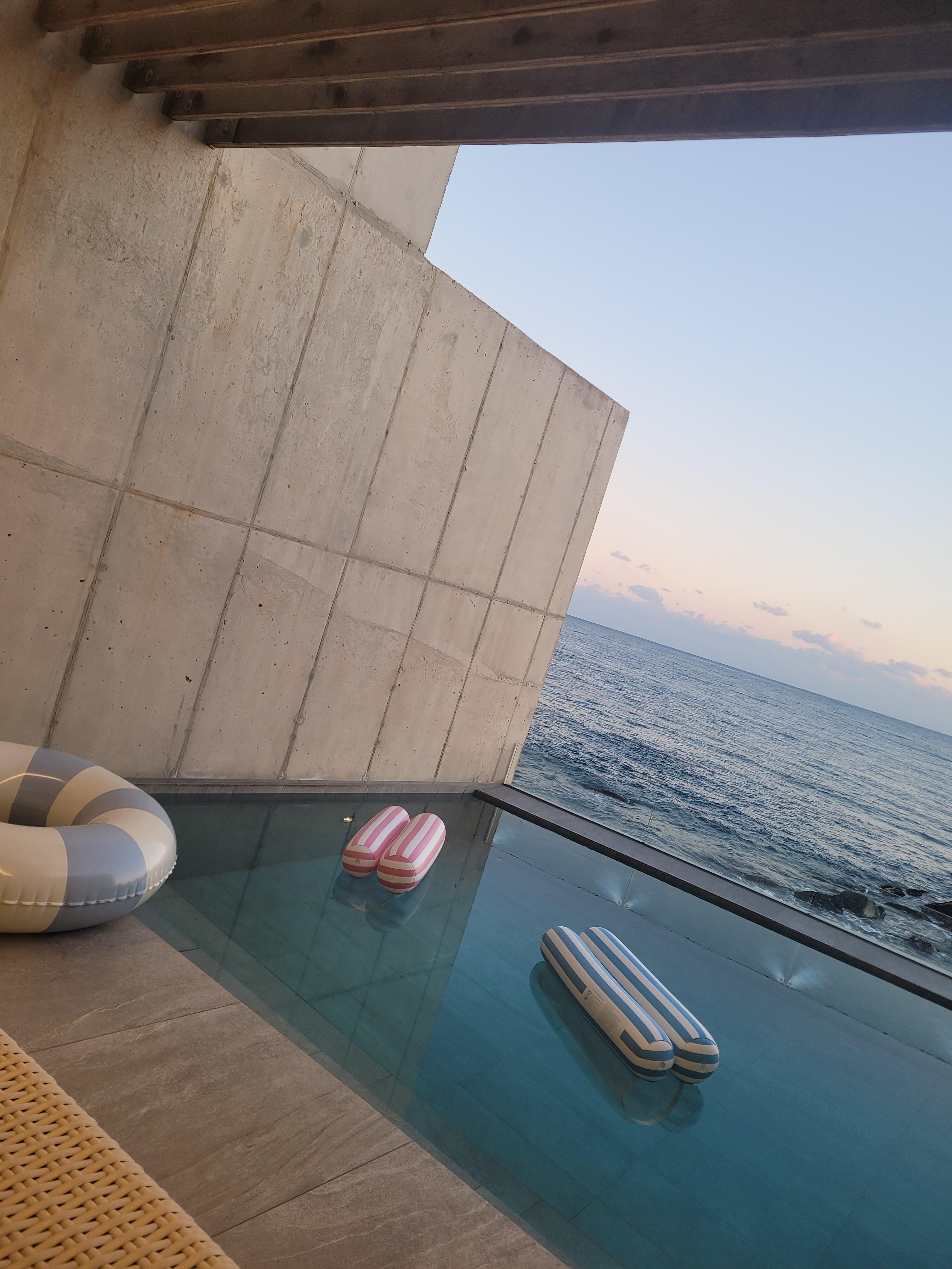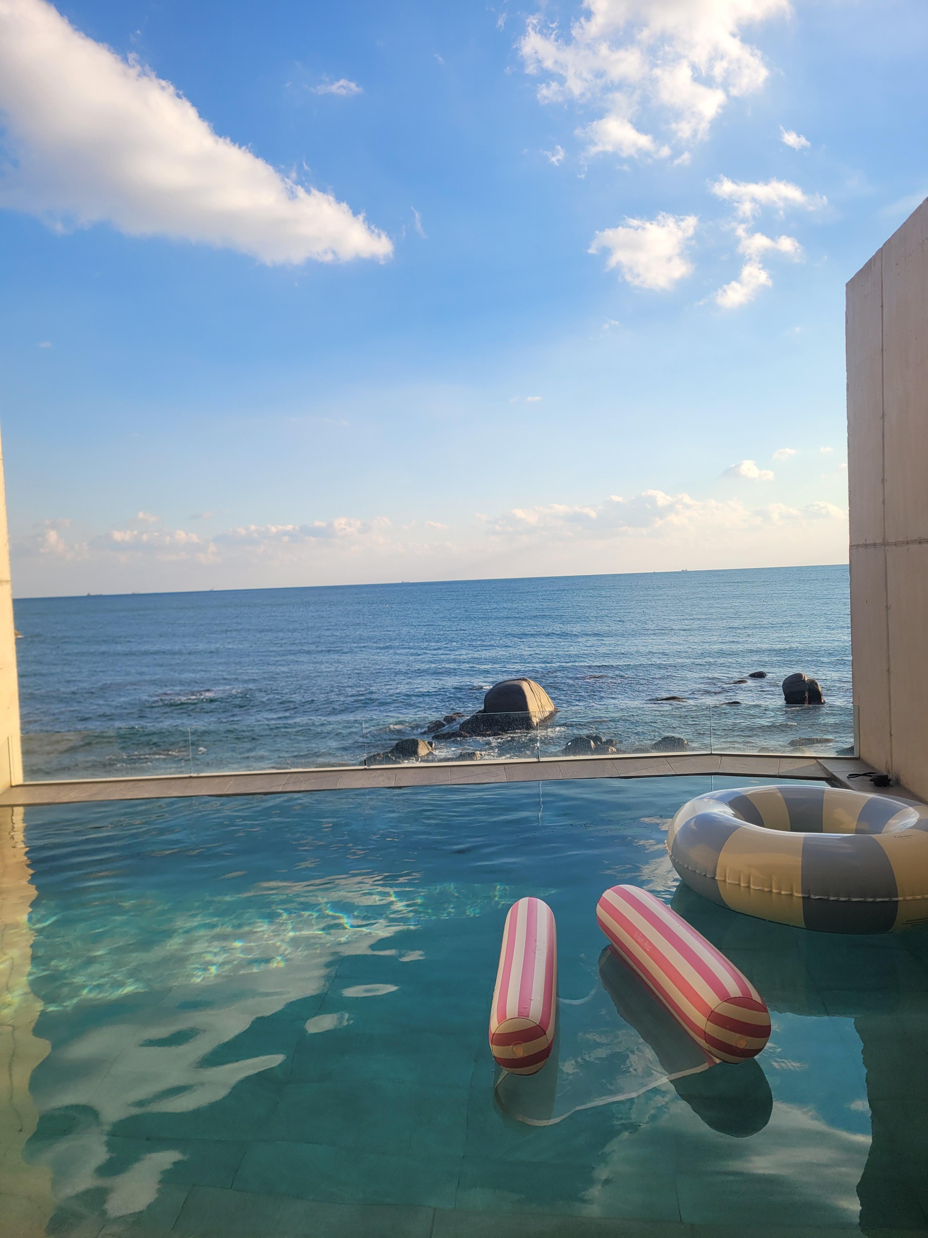 프라이빗한 수영장에 통창 바다 뷰가 맘에 쏙 들었다!