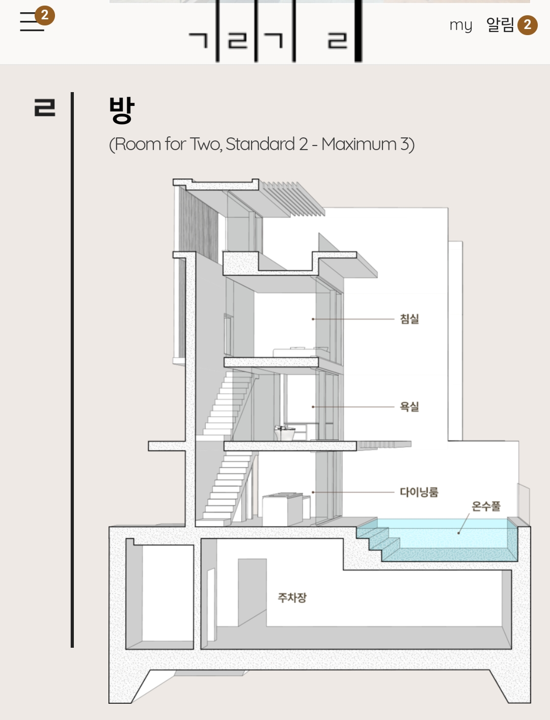 기리기리 풀빌라는 독채로 1층, 2층, 3층으로 구성돼있다.